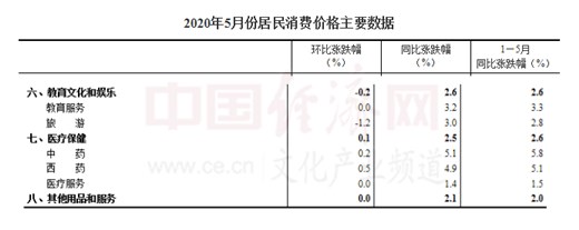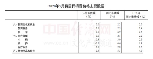 經(jīng)濟(jì)日報(bào)-中國經(jīng)濟(jì)網(wǎng)北京6月12日訊 近日,國家統(tǒng)計(jì)局發(fā)布2020年5月份CPI數(shù)據(jù)。2020年5月份,全國居民消費(fèi)價(jià)格同比上漲2.4%,非食品價(jià)格同比上漲0.4%;全國居民消費(fèi)價(jià)格環(huán)比下降0.8%,非食品價(jià)格環(huán)比持平。其中,教育文化和娛樂價(jià)格同比上漲2.2%,環(huán)比持平。