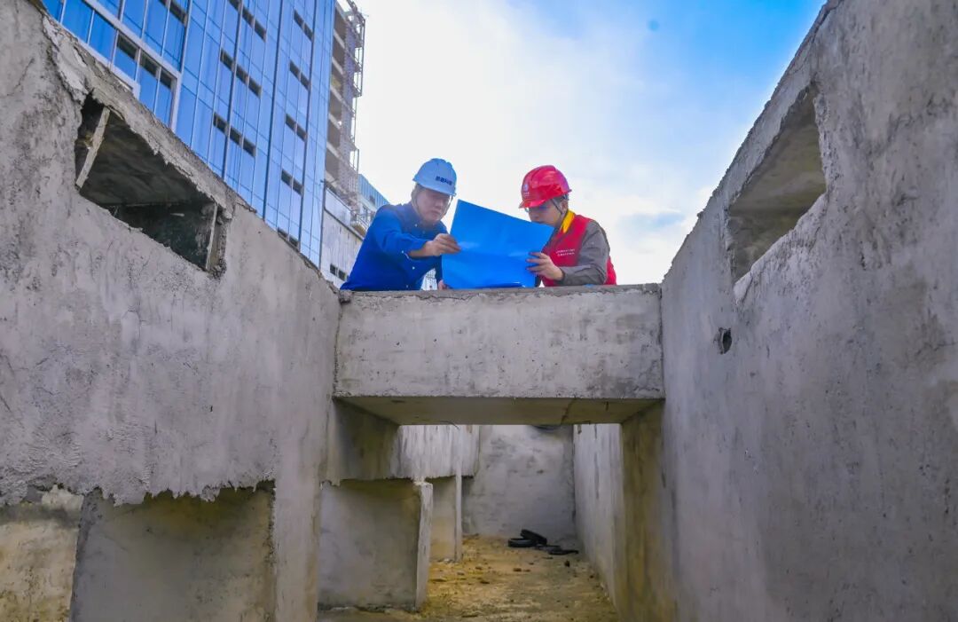 ▲國(guó)網(wǎng)杭州市余杭區(qū)供電公司員工到思看科技有限公司,以專人“一對(duì)一”全程跟蹤,多地塊臨電“打包”式等服務(wù),實(shí)現(xiàn)拿地開(kāi)工“同步走”。張德峰 攝