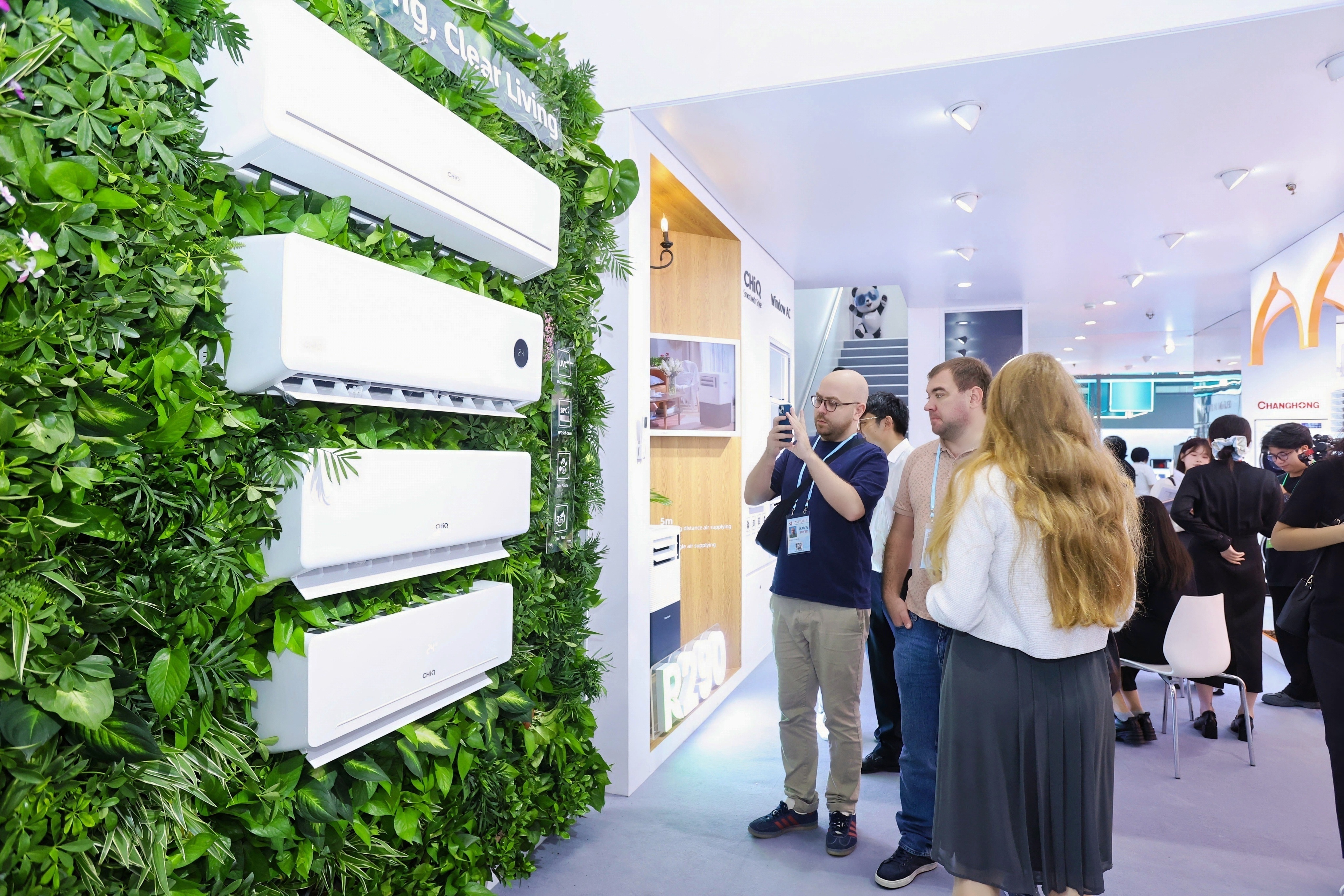其中,中國品牌代表長虹從熊貓主題AI家電的美好生活場景布局,到全面化AI的生活家電,將用戶對情感科技的迫切需求融合落地,展現(xiàn)出中國先進智造的時代魅力,尤其在締造"美好生活"這一核心訴求上,與廣交會不謀而合,“圈粉”全球客商。