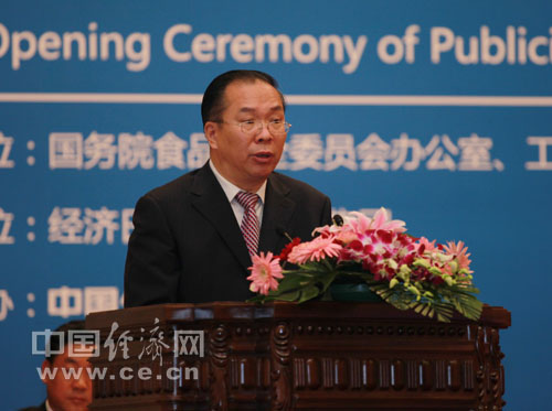 中共中央對(duì)外宣傳辦公室、國(guó)務(wù)院新聞辦公室副主任王國(guó)慶在第三屆中國(guó)食品安全論壇上致辭 王維亮攝